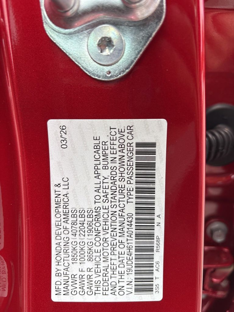 2026 Acura Integra 4D Hatchback A-Spec Tech Package Performance Red Pearl 1.5L I4 DOHC 16V CVT FWD