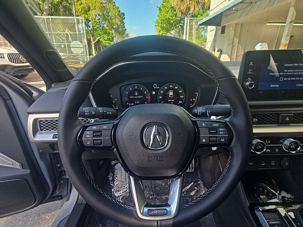 This Integra is well equipped with 18" Aluminum Alloy Wheels, 4-Wheel Disc Brakes, 8 Speakers, ABS brakes, Air Conditioning, Alloy wheels, AM/FM radio, Apple CarPlay/Android Auto, Auto High-beam Headlights, Auto-dimming Rear-View mirror, Automatic temperature control, Brake assist, Bumpers: body-color, Compass, Delay-off headlights, Driver door bin, Driver vanity mirror, Dual front impact airbags, Dual front side impact airbags, Electronic Stability Control, Four wheel independent suspension, Front anti-roll bar, Front Bucket Seats, Front Center Armrest, Front dual zone A/C, Front fog lights, Front reading lights, Fully automatic headlights, Heated door mirrors, Heated Front Bucket Seats, Heated front seats, Illuminated entry, Knee airbag, Lane departure: Lane Keeping Assist System (LKAS) active, Leather Shift Knob, Leather steering wheel, Leatherette-Trimmed Seating Surfaces, Low tire pressure warning, Occupant sensing airbag, Outside temperature display, Overhead airbag, Overhead console, Panic alarm, Passenger door bin, Passenger vanity mirror, Power door mirrors, Power driver seat, Power moonroof, Power steering, Power windows, Radio data system, Radio: Acura Premium Audio System, Rear anti-roll bar, Rear seat center armrest, Rear side impact airbag, Rear window defroster, Remote keyless entry, Security system, Speed control, Speed-sensing steering, Speed-Sensitive Wipers, Split folding rear seat, Spoiler, Steering wheel mounted audio controls, Tachometer, Telescoping steering wheel, Tilt steering wheel, Traction control, Trip computer, and Variably intermittent wipers. Prices shown exclude a destination and handling charge. The destination and handling charge for the Integra and TLX are $1,195 or $1,295, RDX and MDX are $1,195, $1,350 or $1,450. ADX and ZDX are $1,350 or $1,450. Price does not include $1,199 predelivery service fee, tax, title, or license. Optional equipment and accessories available, see dealer for details.