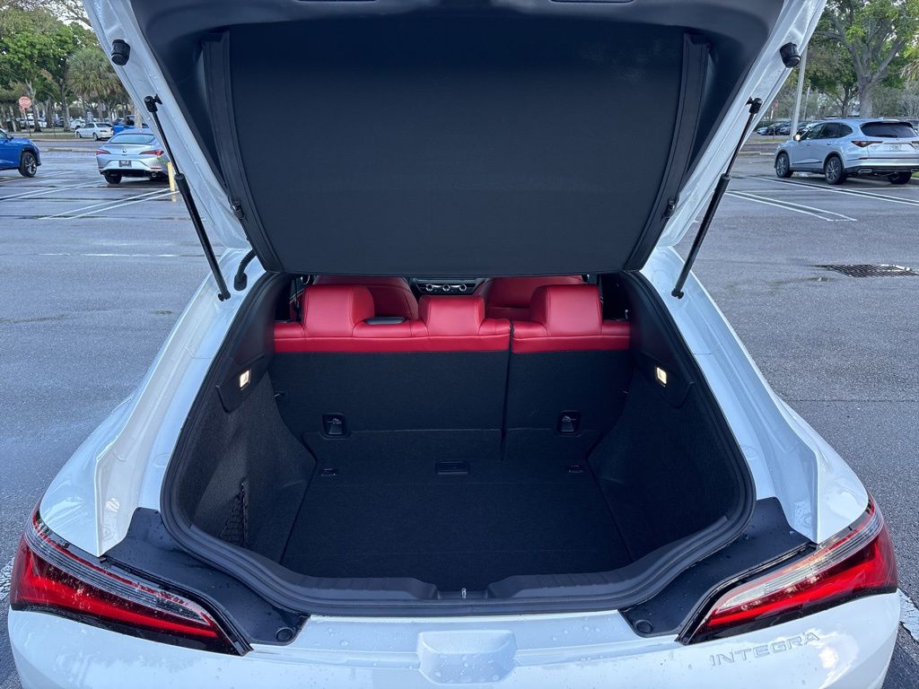 This Integra is well equipped with 4-Wheel Disc Brakes, 8 Speakers, ABS brakes, Air Conditioning, Alloy wheels, AM/FM radio, Apple CarPlay/Android Auto, Auto High-beam Headlights, Auto-dimming Rear-View mirror, Automatic temperature control, Brake assist, Bumpers: body-color, Compass, Delay-off headlights, Driver door bin, Driver vanity mirror, Dual front impact airbags, Dual front side impact airbags, Electronic Stability Control, Four wheel independent suspension, Front anti-roll bar, Front Bucket Seats, Front Center Armrest, Front dual zone A/C, Front fog lights, Front reading lights, Fully automatic headlights, Heated door mirrors, Heated Front Bucket Seats, Heated front seats, Illuminated entry, Knee airbag, Lane departure: Lane Keeping Assist System (LKAS) active, Leather Shift Knob, Leather steering wheel, Leatherette-Trimmed Seating Surfaces, Low tire pressure warning, Occupant sensing airbag, Outside temperature display, Overhead airbag, Overhead console, Panic alarm, Passenger door bin, Passenger vanity mirror, Power door mirrors, Power driver seat, Power moonroof, Power steering, Power windows, Radio data system, Radio: Acura Premium Audio System, Rear anti-roll bar, Rear seat center armrest, Rear side impact airbag, Rear window defroster, Remote keyless entry, Security system, Speed control, Speed-sensing steering, Speed-Sensitive Wipers, Split folding rear seat, Spoiler, Steering wheel mounted audio controls, Tachometer, Telescoping steering wheel, Tilt steering wheel, Traction control, Trip computer, Variably intermittent wipers, and Wheels: 18" x 8J Aluminum-Alloy. Prices shown exclude a destination and handling charge. The destination and handling charge for the Integra and TLX are $1,195 or $1,295, RDX and MDX are $1,195, $1,350 or $1,450. ADX and ZDX are $1,350 or $1,450. Price does not include $1,199 predelivery service fee, tax, title, or license. Optional equipment and accessories available, see dealer for details.