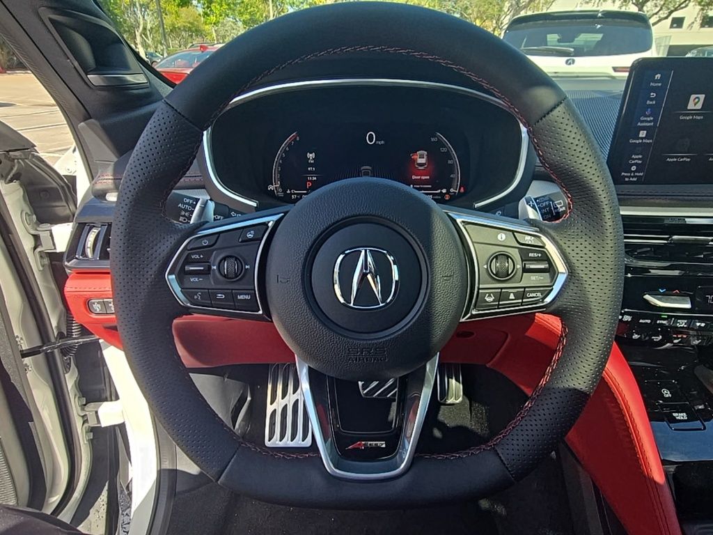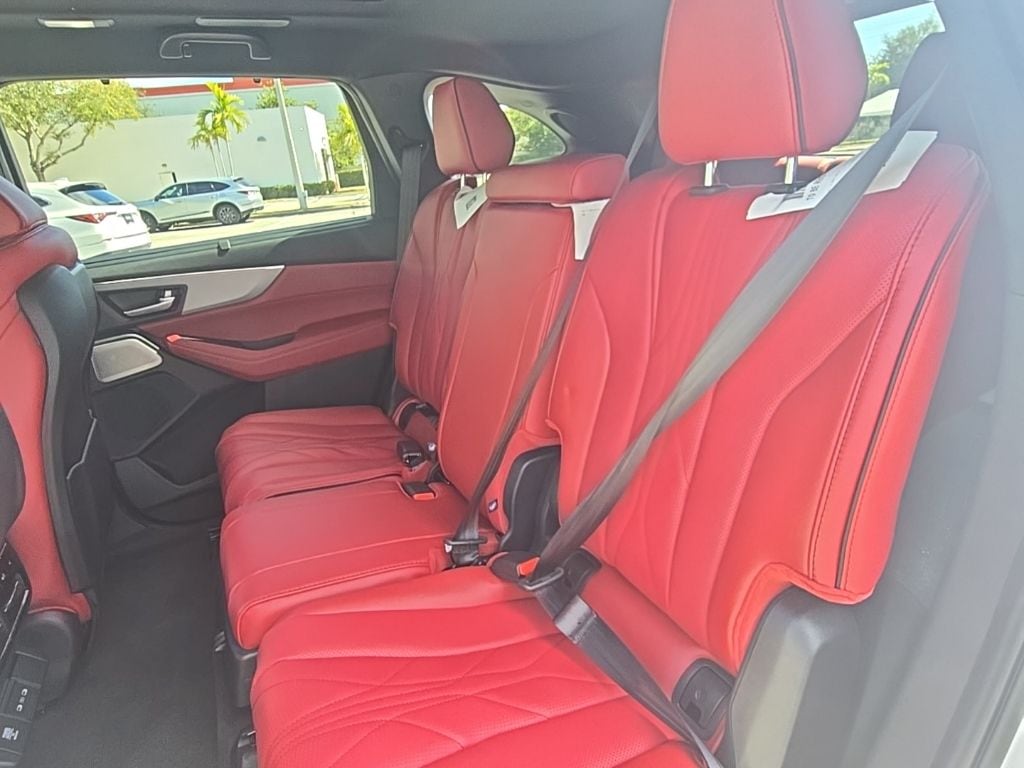 This MDX is well equipped with 19 Speakers, 3rd row seats: split-bench, 4-Wheel Disc Brakes, ABS brakes, Air Conditioning, Alloy wheels, AM/FM radio, Anti-whiplash front head restraints, Apple CarPlay/Android Auto, Audio memory, Auto High-beam Headlights, Auto tilt-away steering wheel, Auto-dimming Rear-View mirror, Automatic temperature control, Brake assist, Bumpers: body-color, Compass, Curvilinear Quilted Perforated Premium Milano Leather Seats, Delay-off headlights, Driver door bin, Driver vanity mirror, Dual front impact airbags, Dual front side impact airbags, Electronic Stability Control, Emergency communication system: AcuraLink, Exterior Parking Camera Rear, Four wheel independent suspension, Front anti-roll bar, Front Bucket Seats, Front Center Armrest, Front dual zone A/C, Front fog lights, Front reading lights, Fully automatic headlights, Garage door transmitter: HomeLink, Heads-Up Display, Heated and Ventilated Front Sport Seats, Heated door mirrors, Heated front seats, Heated rear seats, Heated steering wheel, HVAC memory, Illuminated entry, Knee airbag, Lane departure: Lane Keeping Assist System (LKAS) active, Leather steering wheel, Low tire pressure warning, Memory seat, Navigation system: Google built-in (3-Years Unlimited Data Plan for In-Vehicle Apps), Occupant sensing airbag, Outside temperature display, Overhead airbag, Overhead console, Panic alarm, Passenger door bin, Passenger vanity mirror, Power door mirrors, Power driver seat, Power Liftgate, Power moonroof, Power passenger seat, Power steering, Power windows, Premium audio system: Acura/ELS Studio 3D, Radio data system, Radio: Bang & Olufsen Premium Audio System, Rain sensing wipers, Rear air conditioning, Rear anti-roll bar, Rear reading lights, Rear seat center armrest, Rear window defroster, Rear window wiper, Remote keyless entry, Security system, Speed control, Speed-sensing steering, Speed-Sensitive Wipers, Split folding rear seat, Spoiler, Sport steering wheel, Steering wheel memory, Steering wheel mounted audio controls, Tachometer, Telescoping steering wheel, Tilt steering wheel, Traction control, Trip computer, Turn signal indicator mirrors, Variably intermittent wipers, Ventilated front seats, and Wheels: 20" x 9J Aluminum Alloy. Prices shown exclude a destination and handling charge. The destination and handling charge for the Integra and TLX are $1,195 or $1,295, RDX and MDX are $1,195, $1,350 or $1,450. ADX and ZDX are $1,350 or $1,450. Price does not include $1,199 predelivery service fee, tax, title, or license. Optional equipment and accessories available, see dealer for details.