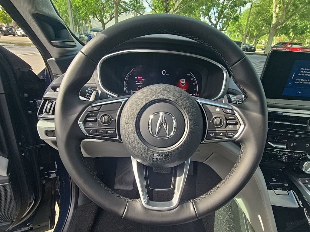 This MDX is well equipped with 19 Speakers, 3rd row seats: split-bench, 4-Wheel Disc Brakes, ABS brakes, Air Conditioning, Alloy wheels, AM/FM radio, Anti-whiplash front head restraints, Apple CarPlay/Android Auto, Audio memory, Auto High-beam Headlights, Auto tilt-away steering wheel, Auto-dimming Rear-View mirror, Automatic temperature control, Brake assist, Bumpers: body-color, Compass, Delay-off headlights, Driver door bin, Driver vanity mirror, Dual front impact airbags, Dual front side impact airbags, Electronic Stability Control, Emergency communication system: AcuraLink, Exterior Parking Camera Rear, Four wheel independent suspension, Front anti-roll bar, Front Bucket Seats, Front Center Armrest, Front dual zone A/C, Front reading lights, Fully automatic headlights, Garage door transmitter: HomeLink, Heated door mirrors, Heated front seats, Heated Front Sport Seats, HVAC memory, Illuminated entry, Knee airbag, Lane departure: Lane Keeping Assist System (LKAS) active, Leather steering wheel, Low tire pressure warning, Memory seat, Navigation system: Google built-in (3-Years Unlimited Data Plan for In-Vehicle Apps), Occupant sensing airbag, Outside temperature display, Overhead airbag, Overhead console, Panic alarm, Passenger door bin, Passenger vanity mirror, Perforated Premium Milano Leather Trimmed Seats, Power door mirrors, Power driver seat, Power Liftgate, Power moonroof, Power passenger seat, Power steering, Power windows, Premium audio system: Acura/ELS Surround, Radio data system, Radio: Bang & Olufsen Premium Audio System, Rain sensing wipers, Rear air conditioning, Rear anti-roll bar, Rear reading lights, Rear seat center armrest, Rear window defroster, Rear window wiper, Remote keyless entry, Security system, Speed control, Speed-sensing steering, Speed-Sensitive Wipers, Split folding rear seat, Spoiler, Steering wheel memory, Steering wheel mounted audio controls, Tachometer, Telescoping steering wheel, Tilt steering wheel, Traction control, Trip computer, Turn signal indicator mirrors, Variably intermittent wipers, and Wheels: 20" x 9J Aluminum Alloy. Prices shown exclude a destination and handling charge. The destination and handling charge for the Integra and TLX are $1,195 or $1,295, RDX and MDX are $1,195, $1,350 or $1,450. ADX and ZDX are $1,350 or $1,450. Price does not include $1,199 predelivery service fee, tax, title, or license. Optional equipment and accessories available, see dealer for details.