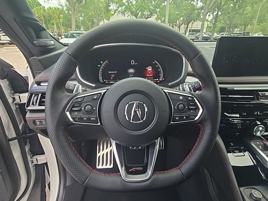 This MDX is well equipped with 19 Speakers, 3rd row seats: split-bench, 4-Wheel Disc Brakes, ABS brakes, Air Conditioning, Alloy wheels, AM/FM radio, Anti-whiplash front head restraints, Apple CarPlay/Android Auto, Audio memory, Auto High-beam Headlights, Auto tilt-away steering wheel, Auto-dimming Rear-View mirror, Automatic temperature control, Brake assist, Bumpers: body-color, Compass, Curvilinear Quilted Perforated Premium Milano Leather Seats, Delay-off headlights, Driver door bin, Driver vanity mirror, Dual front impact airbags, Dual front side impact airbags, Electronic Stability Control, Emergency communication system: AcuraLink, Exterior Parking Camera Rear, Four wheel independent suspension, Front anti-roll bar, Front Bucket Seats, Front Center Armrest, Front dual zone A/C, Front fog lights, Front reading lights, Fully automatic headlights, Garage door transmitter: HomeLink, Heads-Up Display, Heated and Ventilated Front Sport Seats, Heated door mirrors, Heated front seats, Heated rear seats, Heated steering wheel, HVAC memory, Illuminated entry, Knee airbag, Lane departure: Lane Keeping Assist System (LKAS) active, Leather steering wheel, Low tire pressure warning, Memory seat, Navigation system: Google built-in (3-Years Unlimited Data Plan for In-Vehicle Apps), Occupant sensing airbag, Outside temperature display, Overhead airbag, Overhead console, Panic alarm, Passenger door bin, Passenger vanity mirror, Power door mirrors, Power driver seat, Power Liftgate, Power moonroof, Power passenger seat, Power steering, Power windows, Premium audio system: Acura/ELS Studio 3D, Radio data system, Radio: Bang & Olufsen Premium Audio System, Rain sensing wipers, Rear air conditioning, Rear anti-roll bar, Rear reading lights, Rear seat center armrest, Rear window defroster, Rear window wiper, Remote keyless entry, Security system, Speed control, Speed-sensing steering, Speed-Sensitive Wipers, Split folding rear seat, Spoiler, Sport steering wheel, Steering wheel memory, Steering wheel mounted audio controls, Tachometer, Telescoping steering wheel, Tilt steering wheel, Traction control, Trip computer, Turn signal indicator mirrors, Variably intermittent wipers, Ventilated front seats, and Wheels: 20" x 9J Aluminum Alloy. Prices shown exclude a destination and handling charge. The destination and handling charge for the Integra and TLX are $1,195 or $1,295, RDX and MDX are $1,195, $1,350 or $1,450. ADX and ZDX are $1,350 or $1,450. Price does not include $1,199 predelivery service fee, tax, title, or license. Optional equipment and accessories available, see dealer for details.