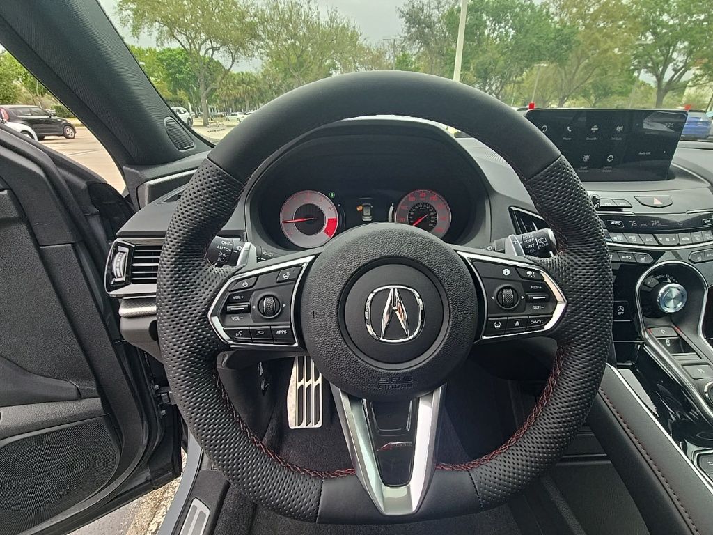 This RDX is well equipped with 16 Speakers, 4-Wheel Disc Brakes, ABS brakes, Adaptive suspension, Air Conditioning, Alloy wheels, AM/FM radio: SiriusXM, Apple CarPlay/Android Auto, Auto High-beam Headlights, Auto-dimming Rear-View mirror, Automatic temperature control, Brake assist, Bumpers: body-color, Compass, Delay-off headlights, Driver door bin, Driver vanity mirror, Dual front impact airbags, Dual front side impact airbags, Electronic Stability Control, Emergency communication system: AcuraLink, Exterior Parking Camera Rear, Four wheel independent suspension, Front anti-roll bar, Front Bucket Seats, Front Center Armrest, Front dual zone A/C, Front fog lights, Front reading lights, Fully automatic headlights, Garage door transmitter: HomeLink, Heads-Up Display, Heated and Ventilated Front Sport Seats, Heated door mirrors, Heated front seats, Heated rear seats, Heated steering wheel, Illuminated entry, Knee airbag, Lane departure: Lane Keeping Assist System (LKAS) active, Low tire pressure warning, Memory seat, Navigation system: Acura Navigation System with 3D View, Occupant sensing airbag, Outside temperature display, Overhead airbag, Overhead console, Panic alarm, Passenger door bin, Passenger vanity mirror, Perforated Milano Premium Leather-Trimmed Interior, Power door mirrors, Power driver seat, Power Liftgate, Power moonroof, Power passenger seat, Power steering, Power windows, Radio data system, Radio: ELS Studio 3D Premium Audio System, Rain sensing wipers, Rear anti-roll bar, Rear reading lights, Rear seat center armrest, Rear window defroster, Rear window wiper, Remote keyless entry, Security system, Speed control, Speed-sensing steering, Split folding rear seat, Spoiler, Sport steering wheel, Steering wheel mounted audio controls, Tachometer, Telescoping steering wheel, Tilt steering wheel, Traction control, Trip computer, Turn signal indicator mirrors, Variably intermittent wipers, Ventilated front seats, and Wheels: 20" x 8.0J Berlina Black Machine-Finished. Prices shown exclude a destination and handling charge. The destination and handling charge for the Integra and TLX are $1,195 or $1,295, RDX and MDX are $1,195, $1,350 or $1,450. ADX and ZDX are $1,350 or $1,450. Price does not include $1,199 predelivery service fee, tax, title, or license. Optional equipment and accessories available, see dealer for details.