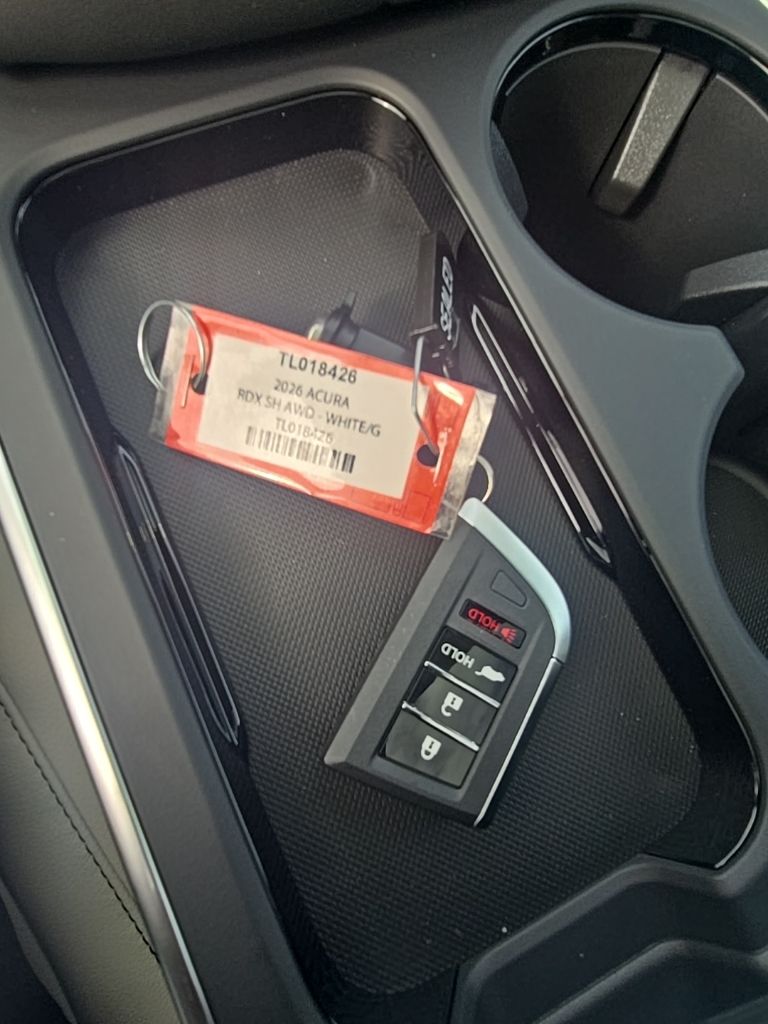 This RDX is well equipped with 4-Wheel Disc Brakes, 9 Speakers, ABS brakes, Air Conditioning, Alloy wheels, AM/FM radio: SiriusXM, Apple CarPlay/Android Auto, Auto High-beam Headlights, Auto-dimming Rear-View mirror, Automatic temperature control, Brake assist, Bumpers: body-color, Compass, Delay-off headlights, Driver door bin, Driver vanity mirror, Dual front impact airbags, Dual front side impact airbags, Electronic Stability Control, Emergency communication system: AcuraLink, Exterior Parking Camera Rear, Four wheel independent suspension, Front anti-roll bar, Front Bucket Seats, Front Center Armrest, Front dual zone A/C, Front reading lights, Fully automatic headlights, Garage door transmitter: HomeLink, Heated door mirrors, Heated front seats, Heated Front Sport Seats, Illuminated entry, Knee airbag, Lane departure: Lane Keeping Assist System (LKAS) active, Leatherette-Trimmed Interior, Low tire pressure warning, Memory seat, Occupant sensing airbag, Outside temperature display, Overhead airbag, Overhead console, Panic alarm, Passenger door bin, Passenger vanity mirror, Power door mirrors, Power driver seat, Power Liftgate, Power moonroof, Power passenger seat, Power steering, Power windows, Premium Audio System, Radio data system, Rear anti-roll bar, Rear reading lights, Rear seat center armrest, Rear window defroster, Rear window wiper, Remote keyless entry, Security system, Speed control, Speed-sensing steering, Split folding rear seat, Spoiler, Steering wheel mounted audio controls, Tachometer, Telescoping steering wheel, Tilt steering wheel, Traction control, Trip computer, Turn signal indicator mirrors, Variably intermittent wipers, and Wheels: 19" x 8.0J Berlina Black. Prices shown exclude a destination and handling charge. The destination and handling charge for the Integra and TLX are $1,195 or $1,295, RDX and MDX are $1,195, $1,350 or $1,450. ADX and ZDX are $1,350 or $1,450. Price does not include $1,199 predelivery service fee, tax, title, or license. Optional equipment and accessories available, see dealer for details.