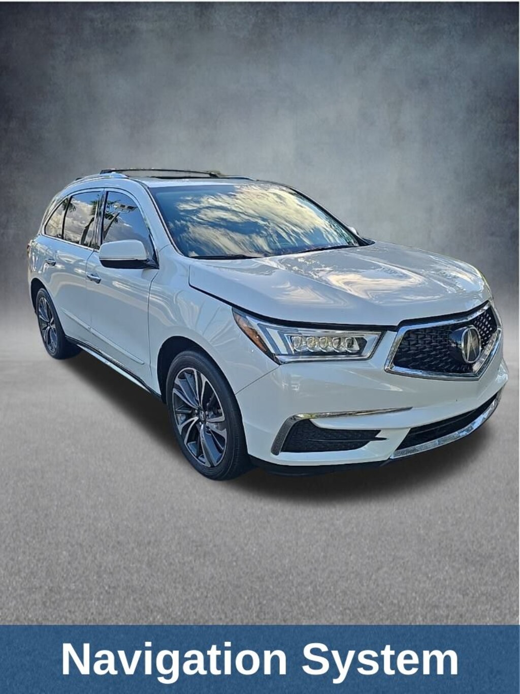 This MDX is well equipped with MDX Technology SH-AWD, 4D Sport Utility, 3.5L V6 SOHC i-VTEC 24V, 9-Speed Automatic, AWD, White, Espresso Leather, 10 Speakers, 3rd row seats: bench, 4-Wheel Disc Brakes, 4.33 Axle Ratio, ABS brakes, Air Conditioning, Alloy wheels, AM/FM radio: SiriusXM, Anti-whiplash front head restraints, Apple CarPlay/Android Auto, Audio memory, Auto High-beam Headlights, Auto tilt-away steering wheel, Auto-dimming Rear-View mirror, Automatic temperature control, Brake assist, Bumpers: body-color, CD player, Compass, Delay-off headlights, Driver door bin, Driver vanity mirror, Dual front impact airbags, Dual front side impact airbags, Electronic Stability Control, Emergency communication system, Exterior Parking Camera Rear, Four wheel independent suspension, Front anti-roll bar, Front Bucket Seats, Front Center Armrest, Front dual zone A/C, Front reading lights, Garage door transmitter: HomeLink, Genuine wood console insert, Genuine wood dashboard insert, Genuine wood door panel insert, Heated door mirrors, Heated front seats, Heated Front Sport Seats, HVAC memory, Illuminated entry, Knee airbag, Lane departure: Lane Keeping Assist System (LKAS) active, Leather steering wheel, Low tire pressure warning, Memory seat, Navigation System, Occupant sensing airbag, Outside temperature display, Overhead airbag, Overhead console, Panic alarm, Passenger door bin, Passenger vanity mirror, Perforated Premium Leather w/Contrast Stitching, Power door mirrors, Power driver seat, Power Liftgate, Power moonroof, Power passenger seat, Power steering, Power windows, Premium audio system: Acura/ELS Surround, Radio data system, Radio