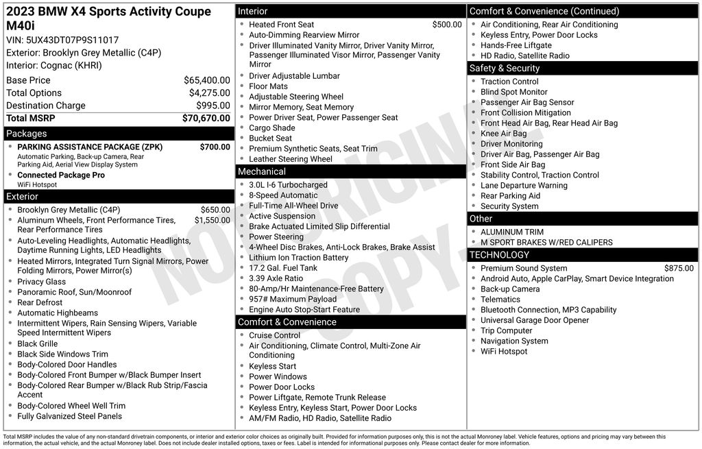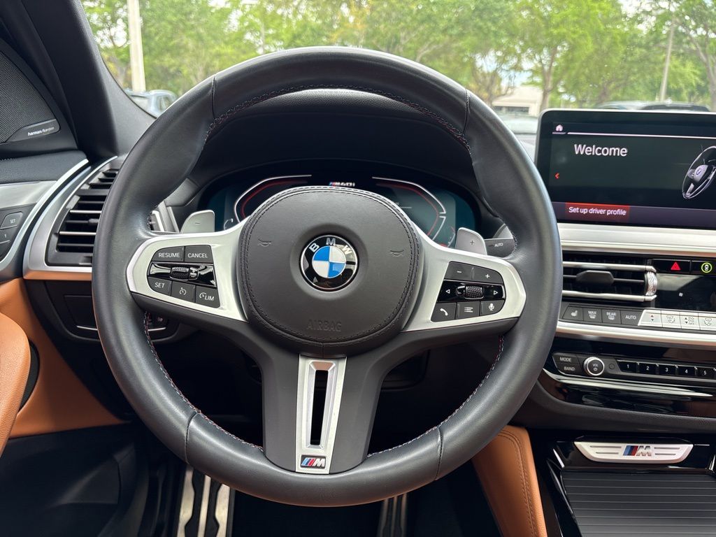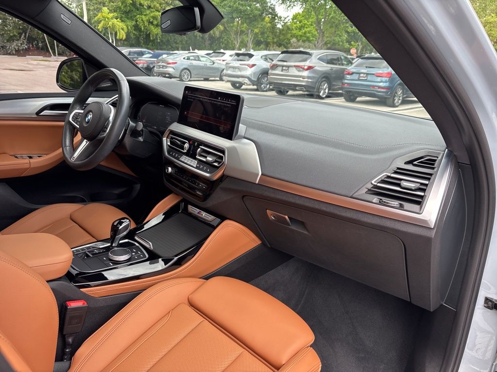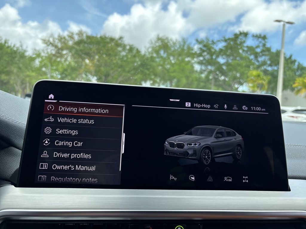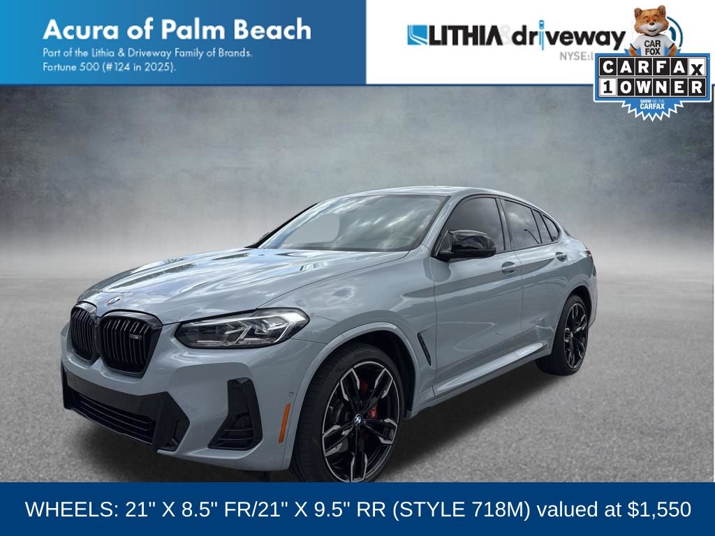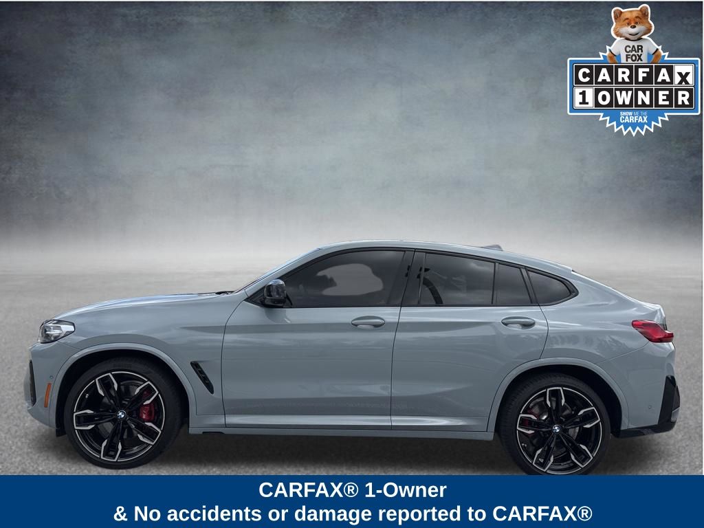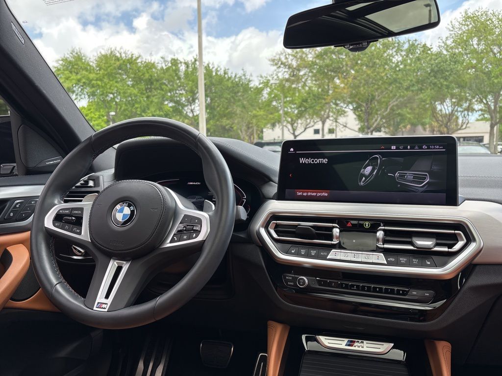 This X4 is well equipped with Connected Package Pro, Parking Assistance Package (Active Park Distance Control, Parking Assistant Plus, Rear-View Camera, and Surround View w/3D View), 12 Speakers, 3.39 Axle Ratio, 4-Wheel Disc Brakes, ABS brakes, Adaptive suspension, Air Conditioning, Alloy wheels, Aluminum Trim, AM/FM radio: SiriusXM, Anti-whiplash front head restraints, Apple CarPlay & Android Auto Compatibility, Auto High-beam Headlights, Auto-dimming door mirrors, Auto-dimming Rear-View mirror, Automatic temperature control, BMW Assist eCall, BMW TeleServices, Brake assist, Bumpers: body-color, ConnectedDrive Services, Delay-off headlights, Driver door bin, Driver Lumbar Support, Driver vanity mirror, Dual front impact airbags, Dual front side impact airbags, Electronic Stability Control, Emergency communication system: BMW Assist eCall, Enhanced USB & Bluetooth w/Smartphone Integration, Exterior Parking Camera Rear, Four wheel independent suspension, Front anti-roll bar, Front Bucket Seats, Front Center Armrest, Front dual zone A/C, Front reading lights, Fully automatic headlights, Garage door transmitter, harman/kardon Surround Sound System, Heated door mirrors, Heated Front Seats, Hi-Fi Sound System, Illuminated entry, Increased Top Speed Limiter, Knee airbag, Live Cockpit Pro w/Navi, Low tire pressure warning, M Sport Brakes w/Red Calipers, Memory seat, Navigation System, Occupant sensing airbag, Outside temperature display, Overhead airbag, Overhead console, Panic alarm, Passenger door bin, Passenger vanity mirror, Perforated SensaTec Upholstery, Power door mirrors, Power driver seat, Power Front Seats, Power Liftgate, Power moonroof: Panorama, Power passenger seat, Power steering, Power windows, Radio data system, Radio: AM/FM Audio System, Rain sensing wipers, Rear air conditioning, Rear anti-roll bar, Rear reading lights, Rear seat center armrest, Rear window defroster, Remote keyless entry, Security system, SiriusXM Satellite Radio, Speed control, Speed-sensing steering, Speed-Sensitive Wipers, Split folding rear seat, Sport Seats, Sport steering wheel, Steering wheel mounted audio controls, Tachometer, Telescoping steering wheel, Tilt steering wheel, Traction control, Trip computer, Turn signal indicator mirrors, Variably intermittent wipers, Wheels: 19" x 7.5" M Y-Spoke Bi-Color (Style 887M), Wheels: 21" x 8.5" Fr/21" x 9.5" Rr (Style 718M), and WiFi Hotspot. Price does not include $1,199 predelivery service fee, tax, title, or license. Optional equipment and accessories available, see dealer for details. *Some of our pre-owned vehicles may be subject to unrepaired safety recalls. Check for a vehicle's unrepaired recalls by VIN at http://vinrcl.safercar.gov/vin.