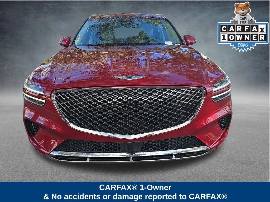 GV70 2.5T, 4D Sport Utility, 2.5L DOHC, 8-Speed Automatic with SHIFTRONIC, AWD, Mauna Red, Vanilla Beige Artificial Leather, 4-Wheel Disc Brakes, 4.181 Axle Ratio, 9 Speakers, ABS brakes, Air Conditioning, Alloy wheels, Aluminum Trim w/Spin Brushed Pattern, AM/FM radio: SiriusXM, Android Auto & Apple CarPlay, Anti-whiplash front head restraints, Auto High-beam Headlights, Auto-dimming Rear-View mirror, Automatic temperature control, Brake assist, Bumpers: body-color, Cargo Cover, Delay-off headlights, Driver door bin, Driver vanity mirror, Dual front impact airbags, Dual front side impact airbags, Electronic Stability Control, Emergency communication system, Exterior Parking Camera Rear, First Aid Kit, Four wheel independent suspension, Front anti-roll bar, Front Bucket Seats, Front Center Armrest w/Storage, Front dual zone A/C, Front reading lights, Fully automatic headlights, Garage door transmitter: HomeLink, Heated door mirrors, Heated Front Bucket Seats, Heated front seats, Heated Steering Wheel, Illuminated entry, Integrated Memory System (IMS), Knee airbag, Leatherette Seating Surfaces, Low tire pressure warning, Monobloc Front Brakes, Navigation System, Occupant sensing airbag, Option Group 02, Outside temperature display, Overhead airbag, Overhead console, Panic alarm, Passenger door bin, Passenger vanity mirror, Power door mirrors, Power driver seat, Power Folding ECM Mirrors w/Genesis Logo Lamp, Power Liftgate, Power passenger seat, Power steering, Power Telescoping Steering Wheel, Power Tilt & Slide Panoramic Sunroof, Power windows, Radio: AM/FM/SiriusXM/HD Premium Audio System, Rain sensing wipers, Rear anti-roll bar, Rear Parking Sensors, Rear reading lights, Rear seat center armrest, Rear window defroster, Rear window wiper, Remote keyless entry, Security system, Select Package, Speed control, Speed-sensing steering, Speed-Sensitive Wipers, Split folding rear seat, Spoiler, Steering wheel mounted audio controls, Tachometer, Telescoping steering wheel, Tilt steering wheel, Traction control, Trip computer, Turn signal indicator mirrors, Variably intermittent wipers, Ventilated Front Seats, Wheel Locks, Wheels: 18" Real Steel Gray Alloy, Wheels: 19" Dark Hyper Silver Aluminum.