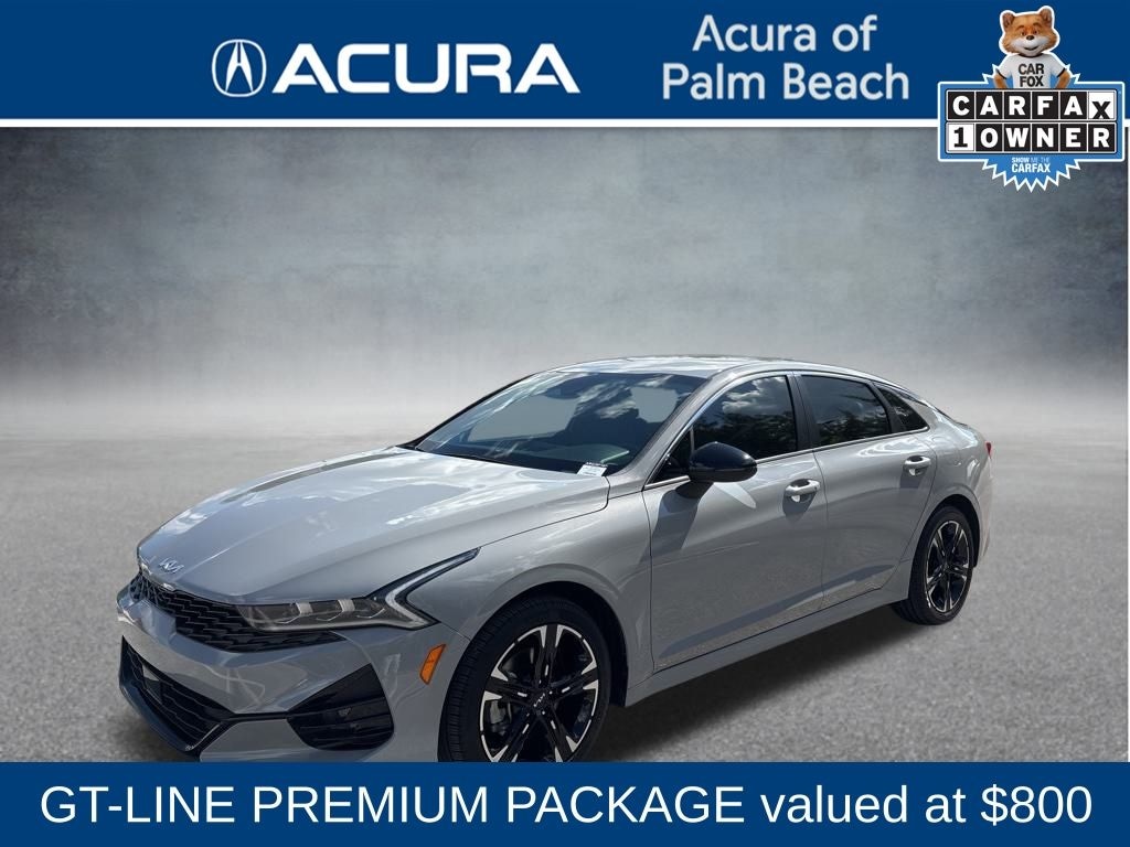 This K5 is well equipped with GT-Line Premium Package (Forward Collision Avoidance-Assist, Highway Driving Assist, LED Projection Headlamps, and Smart Cruise Control w/Stop & Go), K5 GT-Line, 4D Sedan, 1.6L I4 DGI Turbocharged DOHC 16V LEV3-ULEV70 180hp, 8-Speed Automatic, FWD, Wolf Gray, Black Cloth, 4-Wheel Disc Brakes, 6 Speakers, ABS brakes, Air Conditioning, Alloy wheels, AM/FM radio: SiriusXM, Apple CarPlay & Android Auto, Auto High-beam Headlights, Automatic temperature control, Brake assist, Bumpers: body-color, Carpeted Floor Mats, Cloth/SynTex Seat Trim, Delay-off headlights, Driver door bin, Driver vanity mirror, Dual front impact airbags, Dual front side impact airbags, Electronic Stability Control, Four wheel independent suspension, Front anti-roll bar, Front Bucket Seats, Front Center Armrest, Front dual zone A/C, Front fog lights, Front reading lights, Fully automatic headlights, Heated door mirrors, Heated Front Bucket Seats, Heated front seats, Illuminated entry, Knee airbag, Leather steering wheel, Low tire pressure warning, Navigation System, Occupant sensing airbag, Outside temperature display, Overhead airbag, Overhead console, Panic alarm, Passenger door bin, Passenger vanity mirror, Power door mirrors, Power driver seat, Power steering, Power windows, Radio data system, Radio: AM/FM/MP3 Audio System, Rear anti-roll bar, Rear seat center armrest, Rear side impact airbag, Rear window defroster, Remote keyless entry, Security system, Speed control, Speed-sensing steering, Split folding rear seat, Spoiler, Sport steering wheel, S