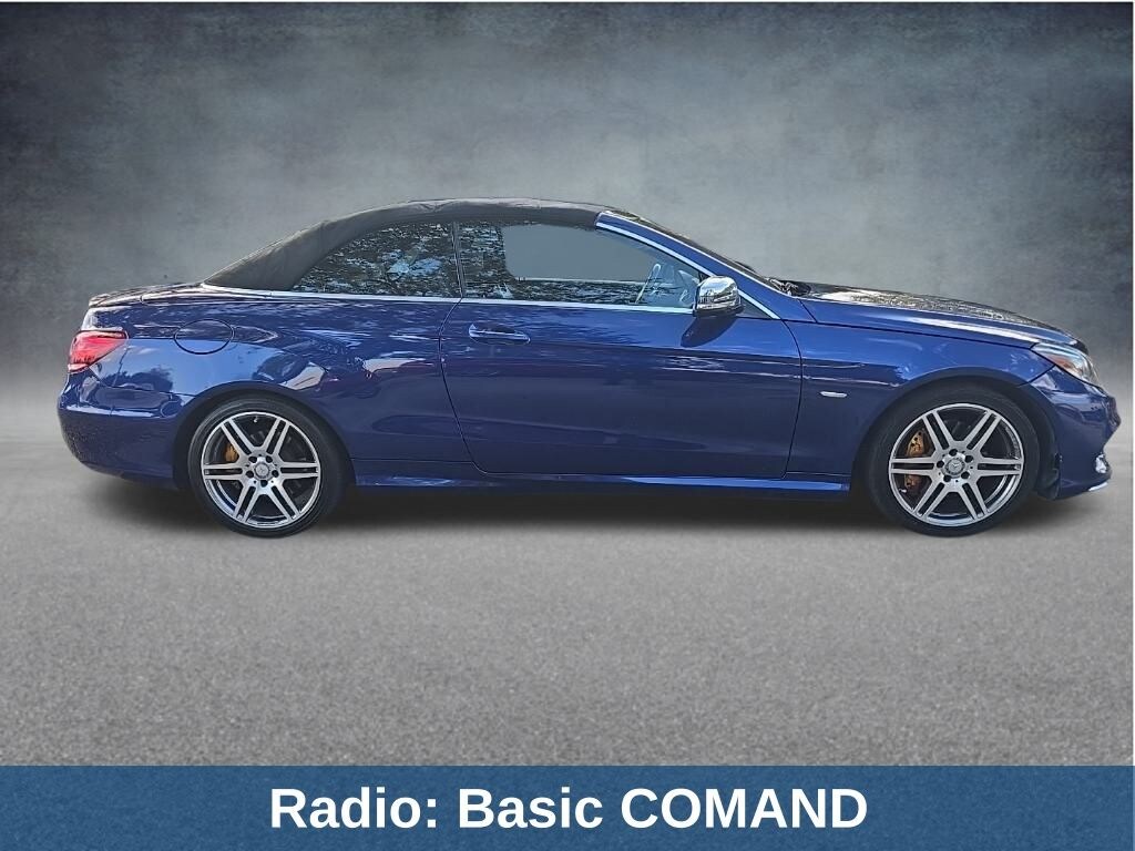 This E-Class is well equipped with E 400, 2D Convertible, 3.0L V6 DOHC, 7-Speed Automatic, RWD, Blue, Black Leather, 18" Twin 5-Spoke Design Wheels, 4-Wheel Disc Brakes, 8 Speakers, ABS brakes, Air Conditioning, Alloy wheels, AM/FM radio, Anti-whiplash front head restraints, Auto tilt-away steering wheel, Auto-dimming door mirrors, Auto-dimming Rear-View mirror, Automatic temperature control, Black SoftTop, Bodyside moldings, Brake assist, Bumpers: body-color, Burl Walnut Wood Trim, CD player, Convertible roof lining, Convertible roof wind blocker, Delay-off headlights, Driver door bin, Driver vanity mirror, Dual front impact airbags, Dual front side impact airbags, DVD-Audio, eCall Emergency System, Electronic Stability Control, Emergency communication system: mbrace2, Four wheel independent suspension, Front anti-roll bar, Front Bucket Seats, Front Center Armrest, Front dual zone A/C, Front reading lights, Fully automatic headlights, Garage door transmitter: Homelink, Genuine wood console insert, Genuine wood dashboard insert, Genuine wood door panel insert, Glass rear window, Head restraints memory, Heated door mirrors, Heated front seats, Heated Power Adjustable Front Seats, Illuminated entry, Integrated roll-over protection, Knee airbag, Leather Shift Knob, Leather Upholstery, Low tire pressure warning, Memory seat, Occupant sensing airbag, Outside temperature display, Overhead airbag, Overhead console, Panic alarm, Passenger door bin, Passenger vanity mirror, Power adjustable front head restraints, Power convertible roof, Power door mirrors, Power driver seat, Power passenger seat, Power steering, Power windows, Premium audio system: COMAND®, Radio data system, Radio: Basic COMAND, Rain sensing wipers, Rear anti-roll bar, Rear seat center