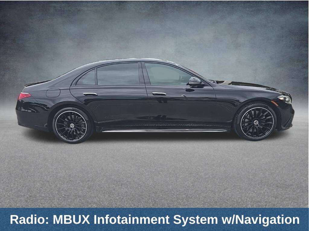 S-Class S 580 4MATIC®, 4D Sedan, 4.0L V8, 9-Speed Automatic, 4MATIC®, Black, Black Leather, 15 Speakers, 4-Wheel Disc Brakes, ABS brakes, Adaptive suspension, Air Conditioning, Alloy wheels, AM/FM radio: SiriusXM, Apple CarPlay®/Android Auto®, Auto High-beam Headlights, Auto tilt-away steering wheel, Auto-dimming door mirrors, Auto-dimming Rear-View mirror, Auto-leveling suspension, Automatic temperature control, Brake assist, Bumpers: body-color, Child-Seat-Sensing Airbag, Compass, Delay-off headlights, Door auto-latch, Driver door bin, Driver vanity mirror, Dual front impact airbags, Dual front side impact airbags, Electronic Stability Control, Emergency communication system: eCall Emergency System, Exterior Parking Camera Rear, Four wheel independent suspension, Front anti-roll bar, Front Bucket Seats, Front Center Armrest, Front dual zone A/C, Front reading lights, Garage door transmitter: HomeLink, Genuine wood dashboard insert, Genuine wood door panel insert, Head restraints memory, Heated door mirrors, Heated front seats, HVAC memory, Illuminated entry, Knee airbag, Leather steering wheel, Low tire pressure warning, Memory seat, Nappa Leather Upholstery, Navigation System, Occupant sensing airbag, Outside temperature display, Overhead airbag, Overhead console, Panic alarm, Passenger door bin, Passenger vanity mirror, Power adjustable front head restraints, Power adjustable rear head restraints, Power door mirrors, Power driver seat, Power moonroof: Panorama, Power passenger seat, Power steering, Power windows, Powered Rapid-Heated & Ventilated Front Seats, Premium audio system: MBUX, Radio data system, Radio: MBUX Infotainment System w/Navigation, Rain sensing wipers, Rear anti-roll bar, Rear fog lights, Rear reading lights, Rear seat center armrest, Rear side impact airbag, Rear Window Blind, Rear window defroster, Remote keyless entry, Security system, Speed control, Speed-sensing steering, Speed-Sensitive Wipers, Steering wheel memory, Steering wheel mounted audio controls, Tachometer, Telescoping steering wheel, Tilt steering wheel, Traction control, Trip computer, Turn signal indicator mirrors, Variably intermittent wipers, Ventilated front seats, Wheels: 19" 10-Twin Multispoke.