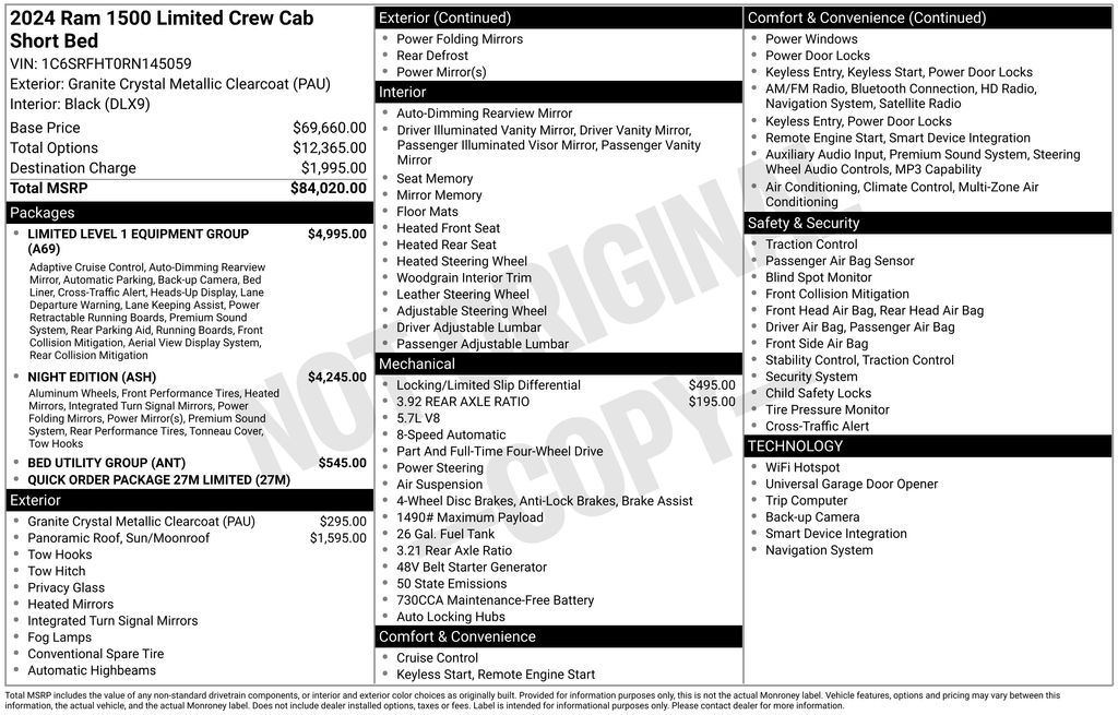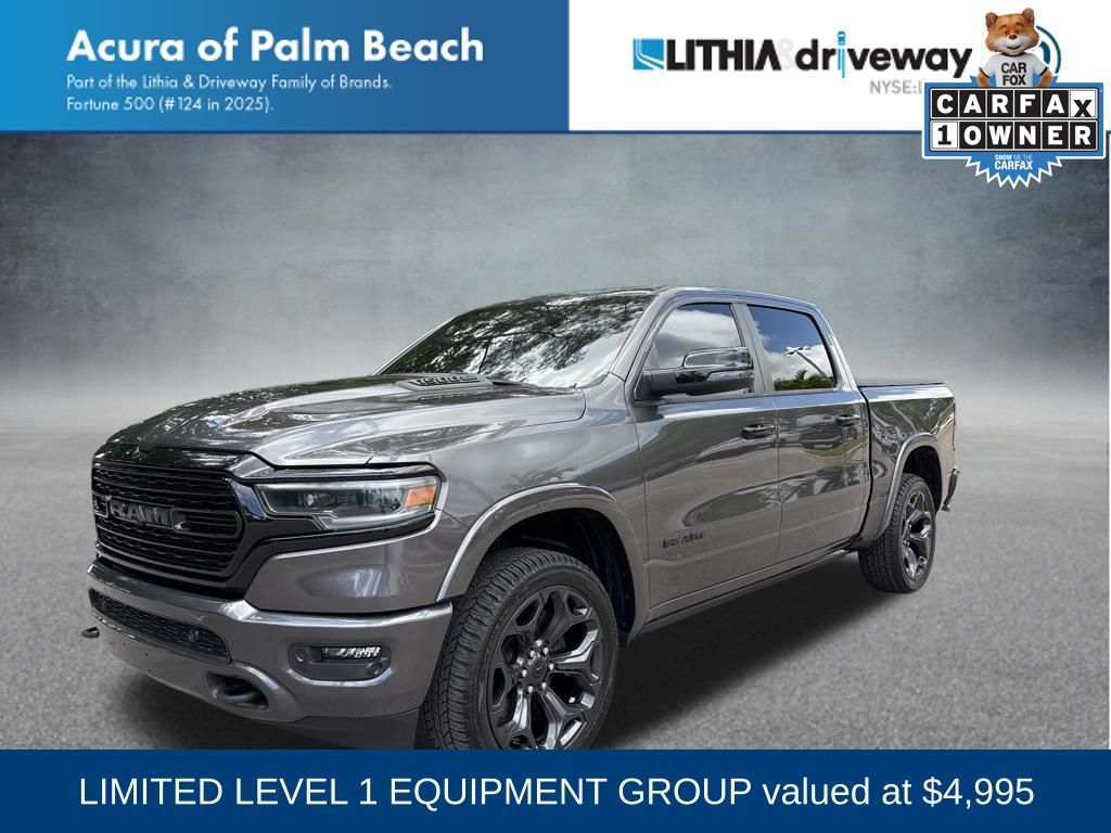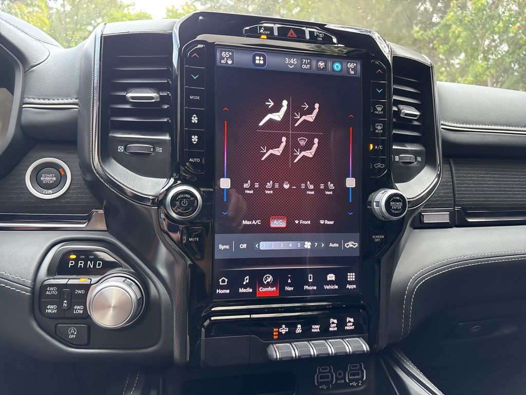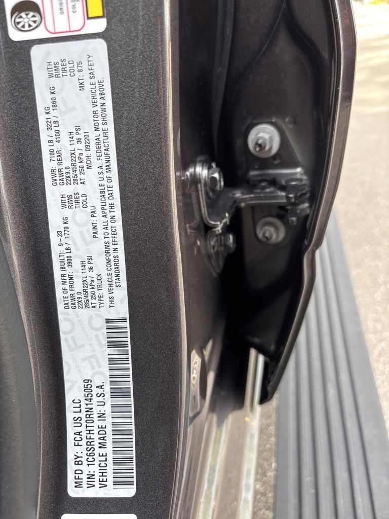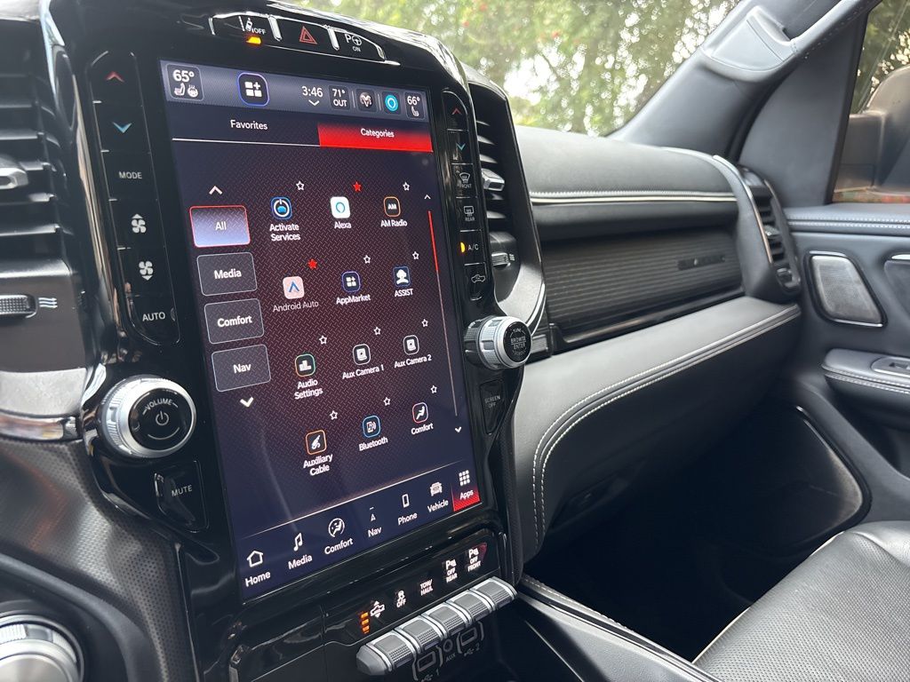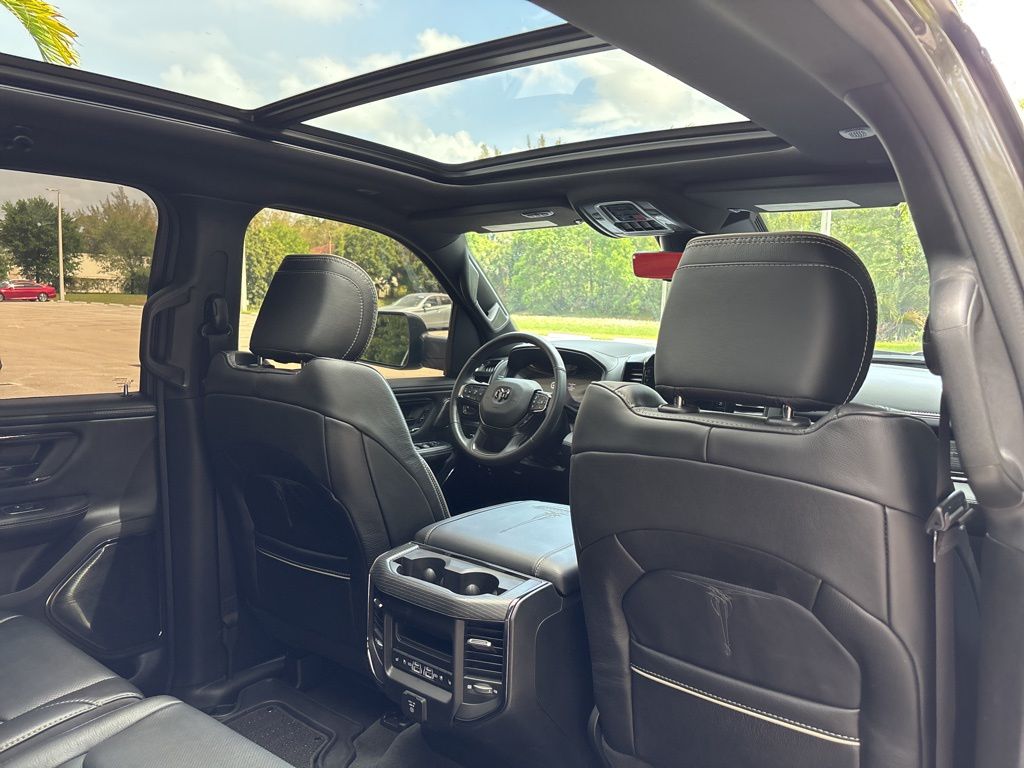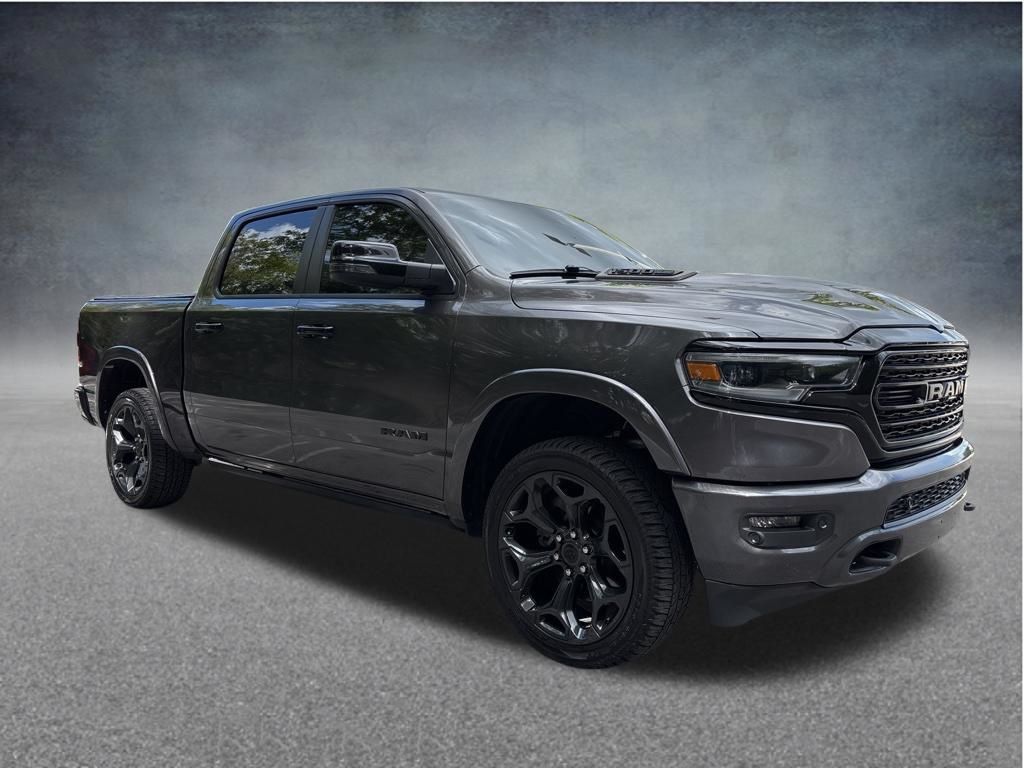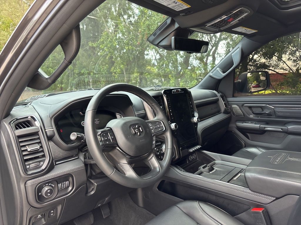 This 1500 is well equipped with Bed Utility Group (MOPAR 4 Adjustable Cargo Tie-Down Hooks), Limited Level 1 Equipment Group (Adaptive Cruise Control w/Stop & Go, Digital Rearview Mirror, harman/kardon 19 Speaker Premium Sound, Heads-Up Display, Lane Keep Assist, LED CHMSL Lamp, MOPAR Spray In Bedliner, Parallel & Perp Park Assist w/Stop, ParkSense Front/Rear Park Assist w/Stop, Pedestrian Emergency Braking, Pick-Up Box Lighting, Power Running Boards, Surround View Camera System, and Wireless Charging Pad), Night Edition (Accent Color Door Handles, Accent Color Premium Power Mirrors, Auto-Dimming Exterior Driver Mirror, Black Day Light Opening Moldings, Black Exterior Truck Badging, Black Grille Surround Texture 7 Black, Black Headlamp Bezels, Black Painted Exterior Mirrors Caps, Body Color Front Bumper, Body Color Rear Bumper w/Step Pads, Convex Wide-Angle Exterior Mirror Insert, Dual Exhaust w/Black Tips, Exterior Mirrors w/Memory, Exterior Mirrors w/Supplemental Signals, Power-Folding Mirrors, RAM Grille Badge - Black, Sport Performance Hood, Tow Hooks, Tri-Fold Tonneau Cover, and Wheels: 22" x 9" Black Aluminum), Quick Order Package 27M Limited, 4 Way Front Headrests, 4-Wheel Disc Brakes, 48V Belt Starter Generator, ABS brakes, Adjustable pedals, Air Conditioning, Alloy wheels, AM/FM radio: SiriusXM with 360L, Anti-Spin Differential Rear Axle, Apple CarPlay/Android Auto, Auto High-beam Headlights, Auto-dimming door mirrors, Auto-dimming Rear-View mirror, Auto-leveling suspension, Automatic temperature control, Bodyside moldings, Brake assist, Bumpers: chrome, Chrome Exterior Mirrors, Compass, Delay-off headlights, Dome Dual LED Reading Lamp, Driver door bin, Driver Seat Memory, Driver vanity mirror, Dual front impact airbags, Dual front side impact airbags, Dual Rear Exhaust w/Bright Tips, Dual-Pane Panoramic Sunroof, Electronic Stability Control, Front anti-roll bar, Front Bucket Seats, Front Center Armrest w/Storage, Front dual zone A/C, Front fog lights, Front reading lights, Front Seat Back Map Pockets, Front wheel independent suspension, Full Length Premium Floor Console, Fully automatic headlights, Garage door transmitter, Genuine wood console insert, Genuine wood door panel insert, Heated door mirrors, Heated Front Seats, Heated rear seats, Heated Second Row Seats, Heated Steering Wheel, Heavy-Duty Engine Cooling, HEMI Badge, Illuminated entry, Leather steering wheel, LED Dome/Reading Lamp, Low tire pressure warning, Navigation System, Occupant sensing airbag, Outside temperature display, Overhead airbag, Overhead console, Panic alarm, ParkView Rear Back-Up Camera, Passenger door bin, Passenger vanity mirror, Passive Tuned Mass Damper, Pedal memory, Power 4-Way Driver Lumbar Adjust, Power 4-Way Passenger Lumbar Adjust, Power 8-Way Driver & Passenger Seats, Power door mirrors, Power driver seat, Power steering, Power windows, Premium Leather Trimmed Bucket Seats, Radio: Uconnect 5 Nav w/12.0" Display, Rain sensing wipers, Rear 60/40 Folding Split Recline Seat, Rear anti-roll bar, Rear seat center armrest, Rear step bumper, Rear window defroster, Remote keyless entry, Security system, Speed control, Split folding rear seat, Steering wheel mounted audio controls, Tachometer, Telescoping steering wheel, Tilt steering wheel, Traction control, Trip computer, Turn signal indicator mirrors, Variably intermittent wipers, Ventilated Front Seats, Ventilated Rear Seats, Voltmeter, and Wheels: 20" x 9" Aluminum Painted/Polished. Price does not include $1,199 predelivery service fee, tax, title, or license. Optional equipment and accessories available, see dealer for details. *Some of our pre-owned vehicles may be subject to unrepaired safety recalls. Check for a vehicle's unrepaired recalls by VIN at http://vinrcl.safercar.gov/vin.